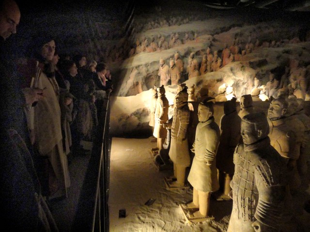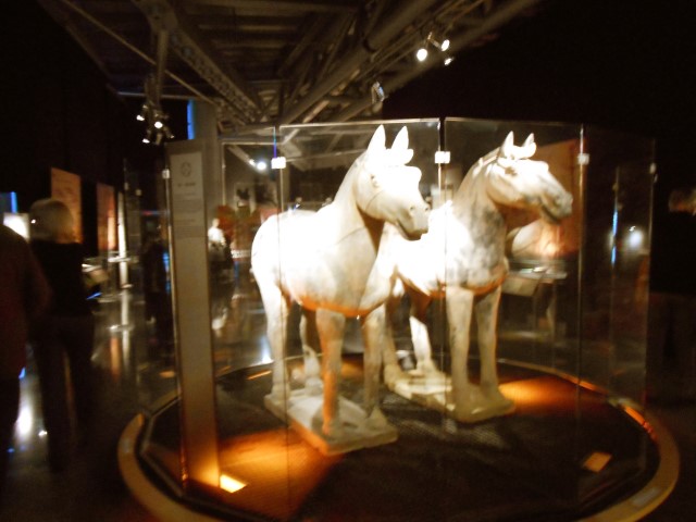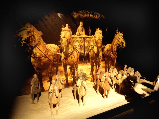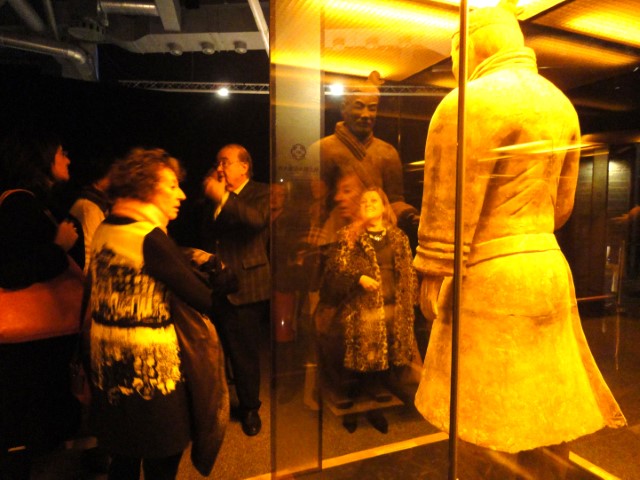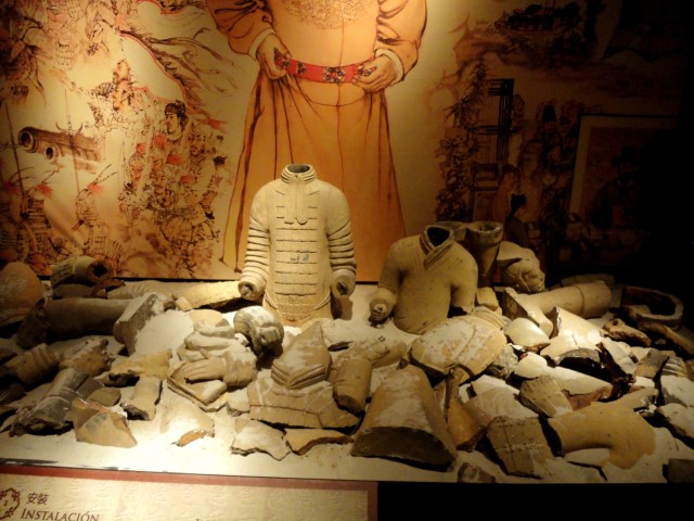 Se presentan más de 150 fantásticas piezas, reproducciones procedentes de los hallazgos del mausoleo de Qin Shi Huang: Una panorámica de la sección del foso 1 de la gran excavación a escala 1:1, con más de 90 guerreros, acompaña la muestra con elementos interactivos que incitan al visitante a realizar un impresionante viaje a través del tiempo. La mayoría son guerreros, unos 90, y el resto son caballos y otras piezas del ejército del que se hizo acompañar en su mausoleo el emperador chino.